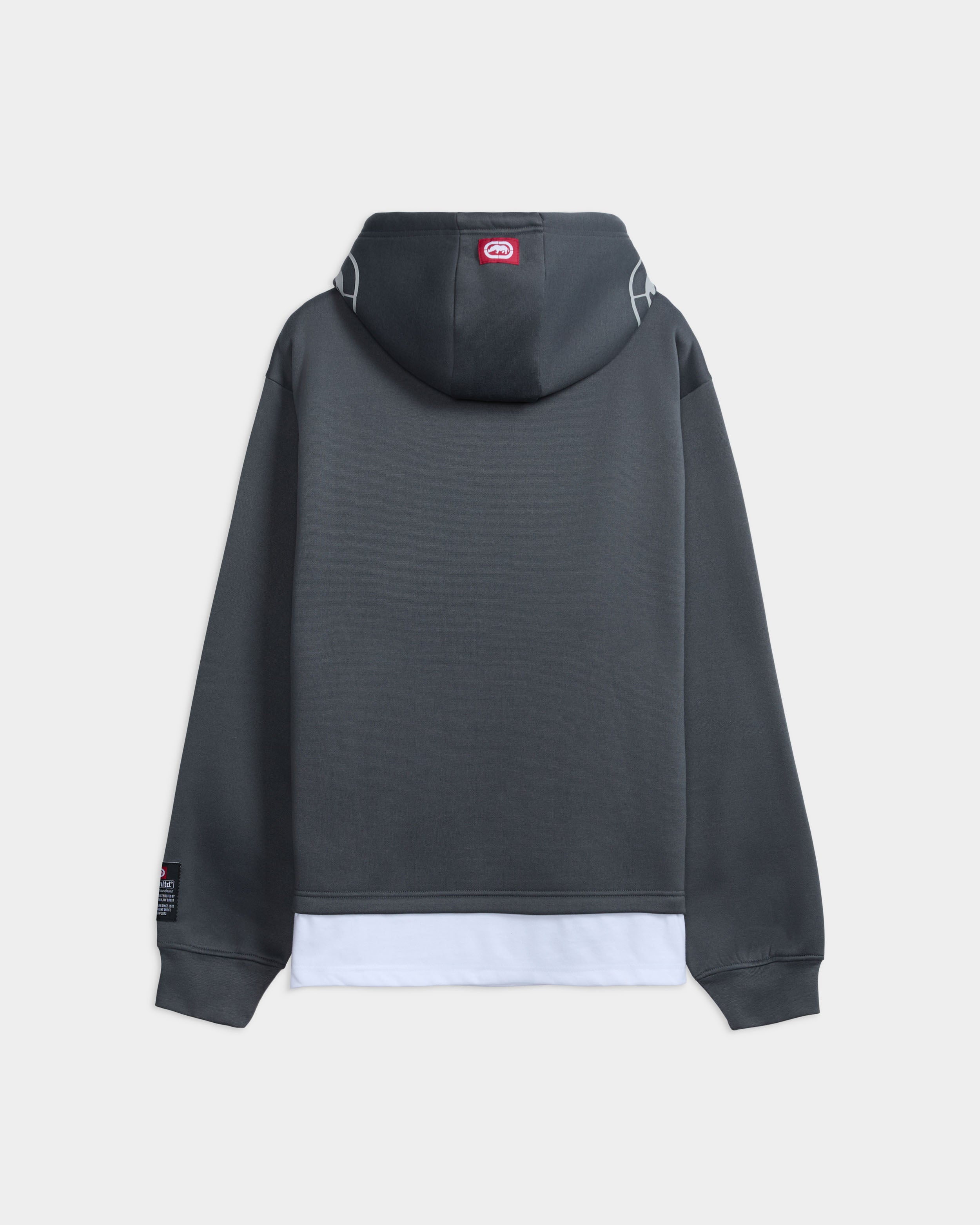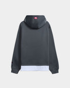 This oversized twofer hoodie combines layered coverage with a fixed hood and adjustable drawstrings. A kangaroo pocket and fooler hem provide practical functionality and structure. Designed for a relaxed fit, it balances dual-layer construction with everyday wearability.
