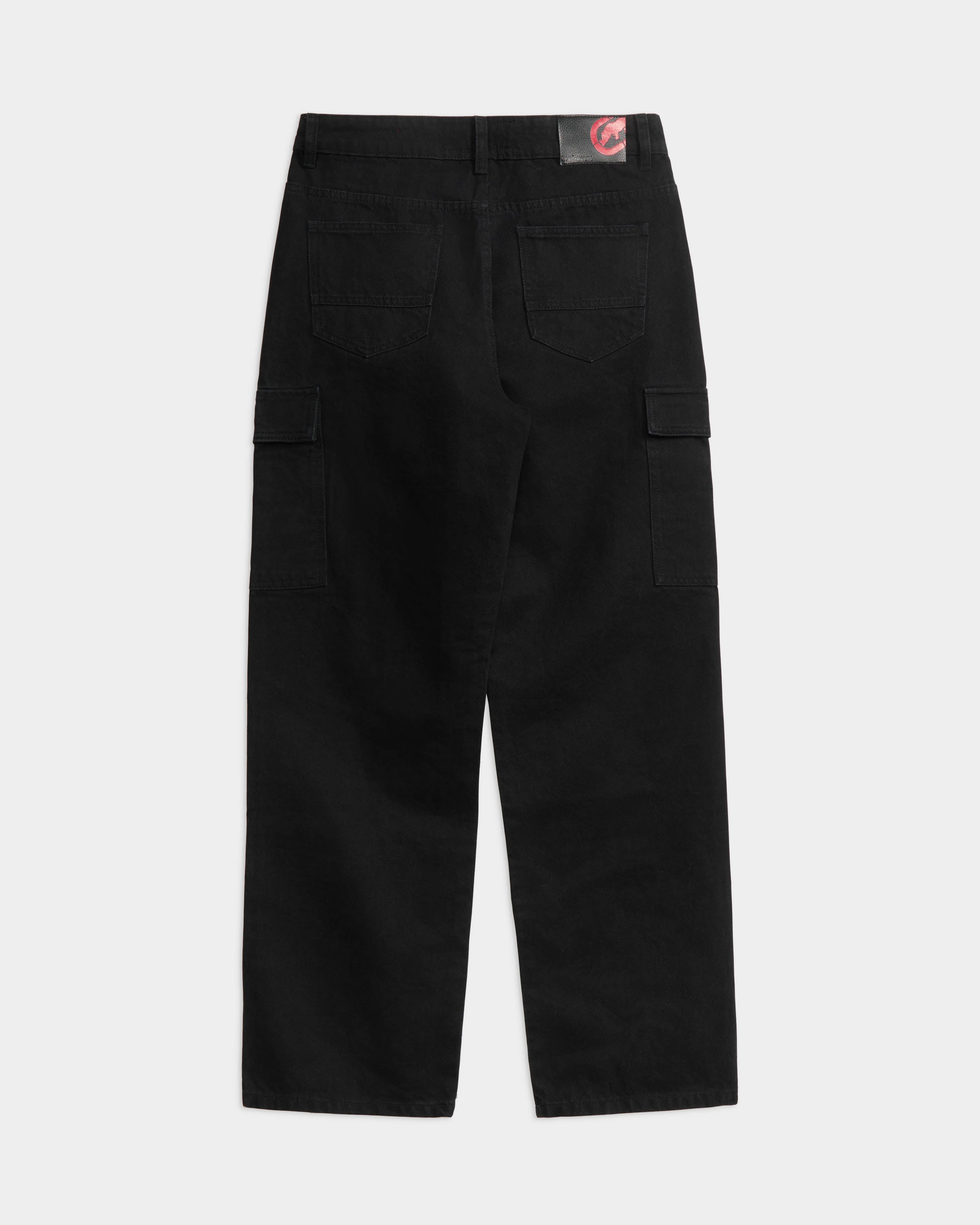 The Carpenter Cargo Baggy Denim Pants are made from durable denim for a comfortable yet structured feel. Functional carpenter panels and utility pockets are featured throughout. Details include a zip fly with a metal shank closure, cargo side pockets with snap closures, and back patch pockets. A woven ECKO UNLTD label is placed on the side pocket, and a denim waistband patch adds a signature touch.