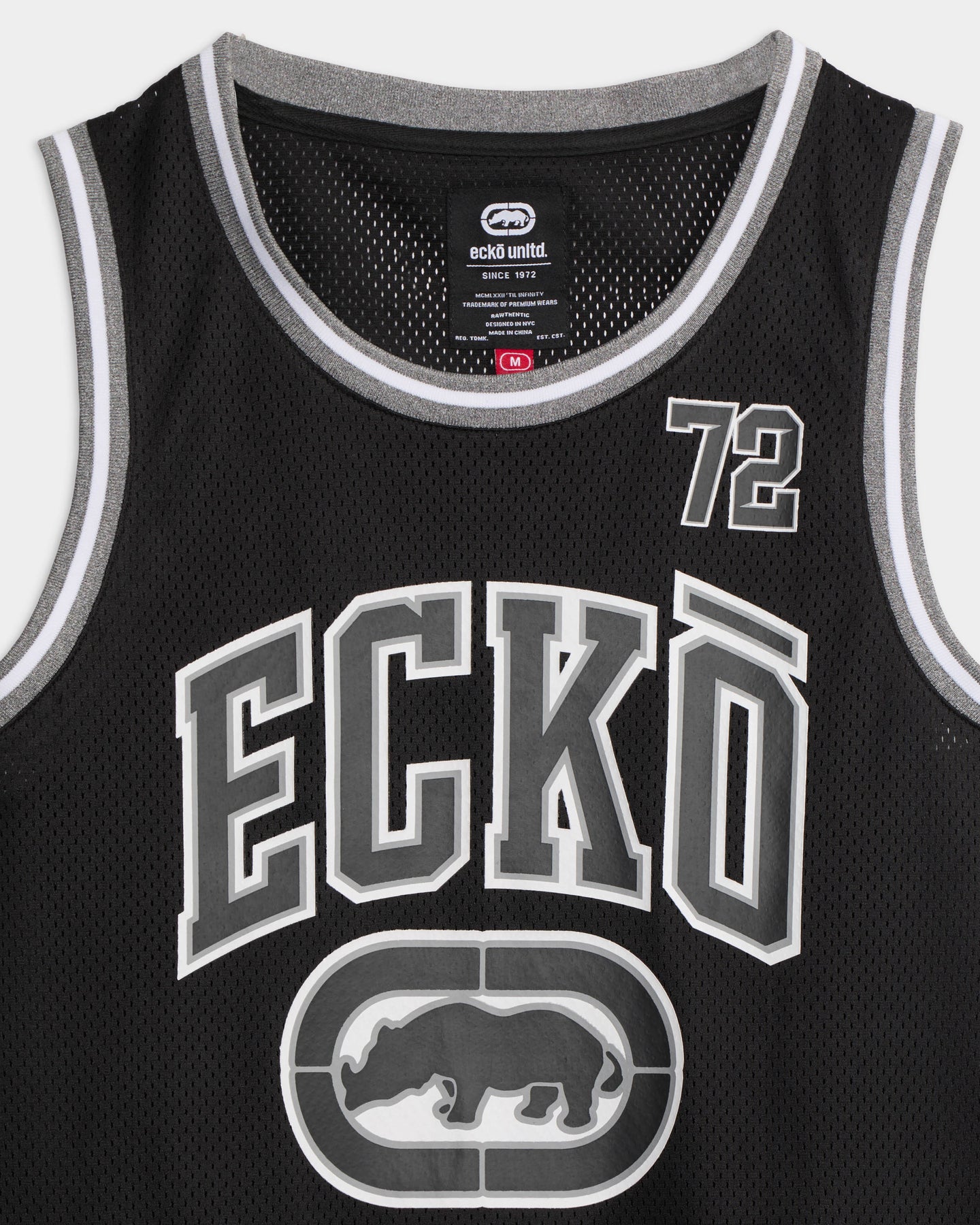 The Varsity District Tank is crafted from breathable 255gsm athletic mesh for a lightweight feel. Designed with a relaxed fit, it features contrast rib-knit binding at the neckline and armholes for a classic athletic aesthetic. ECKO is branded across the chest, while a woven ECKO label is near the hem. Functional details include reinforced stitching for durability and a herringbone neck tape for a clean finish.